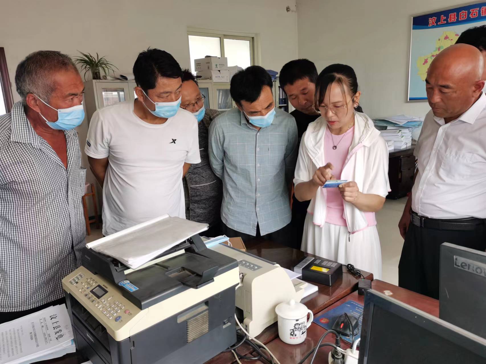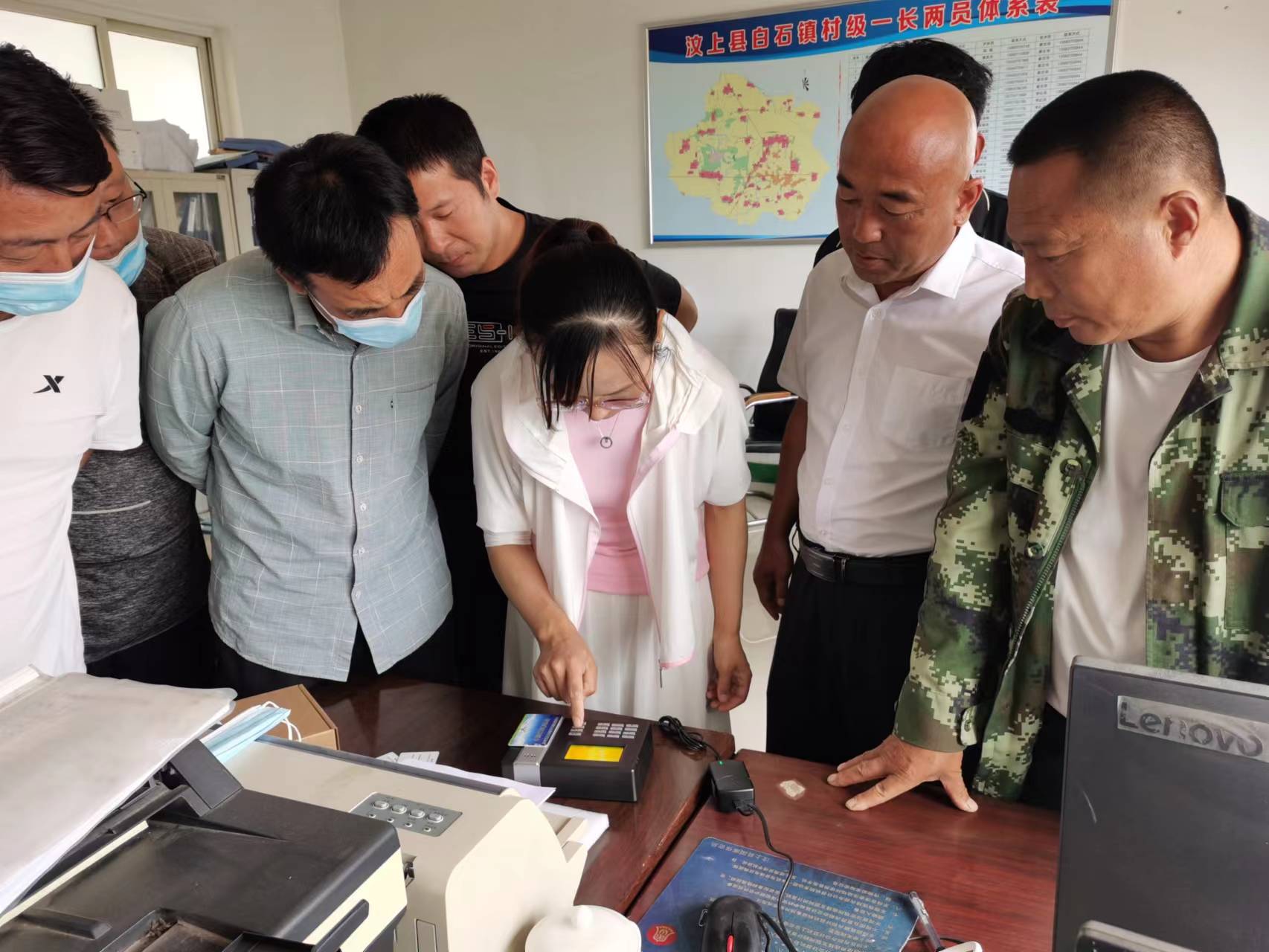 浩坤潤土技術人員在汶上縣白石鎮高標準農田建設項目區培訓智能射頻控制器及管理機的使用方法。