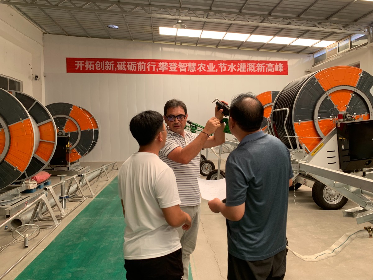六月十一日上午,葡萄牙國客商來浩坤潤土公司 考察,洽談購買智能水肥一體機,大型指針式、平移式噴灌機,卷盤式智能噴灌機等事項。